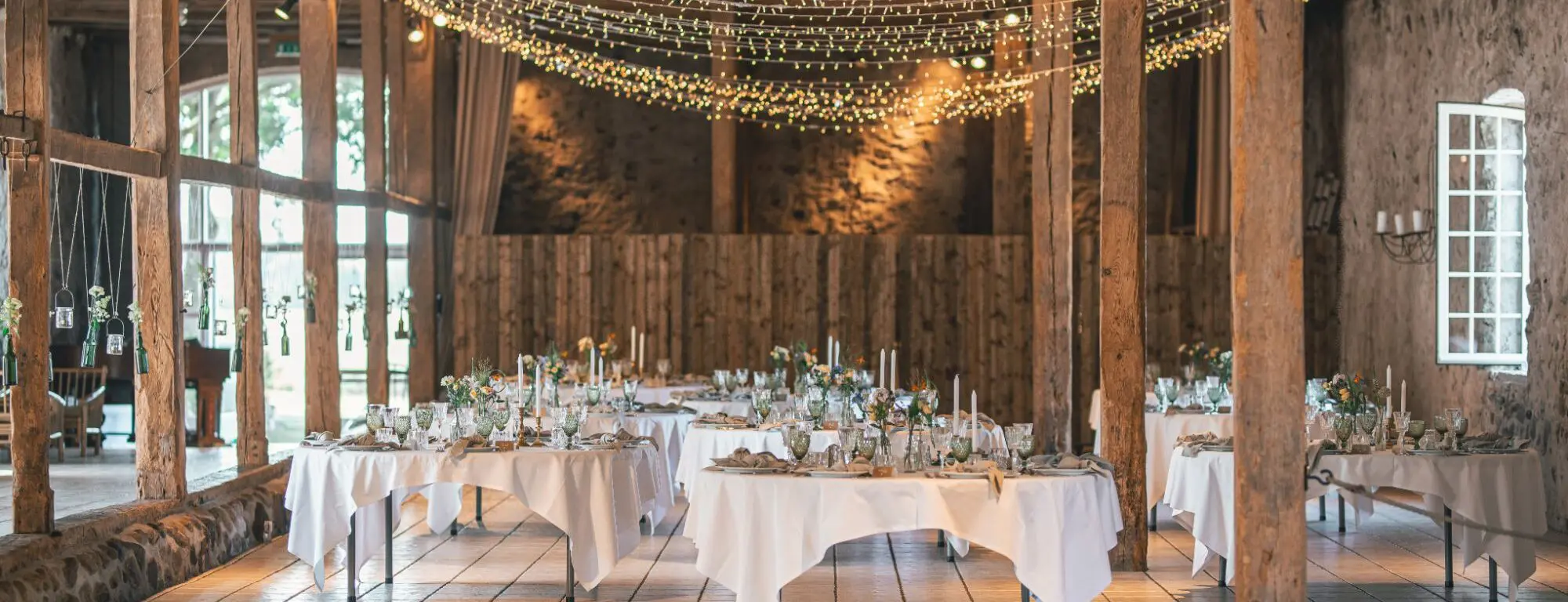 Vil I holde en fest i vores lade fra 1877 med langborde og lyskæder? Eller i vores herskabelige hovedbygning med smukke detaljer? Eller føle romantikken i den gamle hestestald?