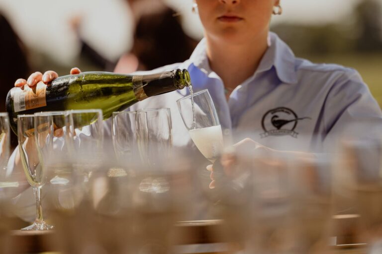 Fasaneriet serverede lette sommerretter og bobler til receptionen, mens solen glimtede i glassene, og rosenblade dansede i vinden. Senere fortsatte middagen i den stemningsfulde 1877-Lade, hvor festen varede helt til natten.