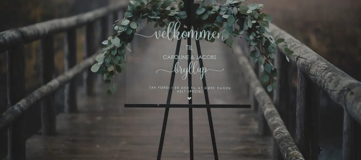 Et velkomstskilt er flot og indbydende, og når det gøres personlig med jeres navne, så føler man sig som gæst budt rigtig godt velkommen.