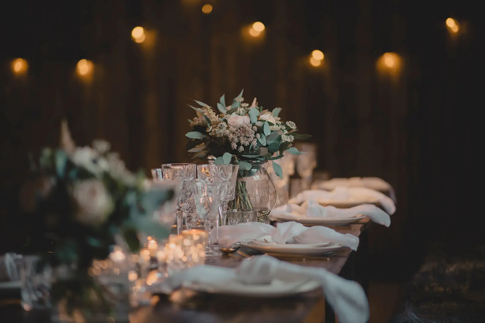 Styling og udlejning af vaser, lysholdere, lyskæder og andet bryllupspynt: Maria Lyng