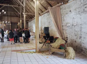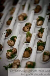 Med al udsmykningen på plads, og gæsterne lige på trapperne, skulle der gøres klar til receptionen. Heldigvis havde Stine og Jan lyttet til mine råd og booket de lokale tjenere.